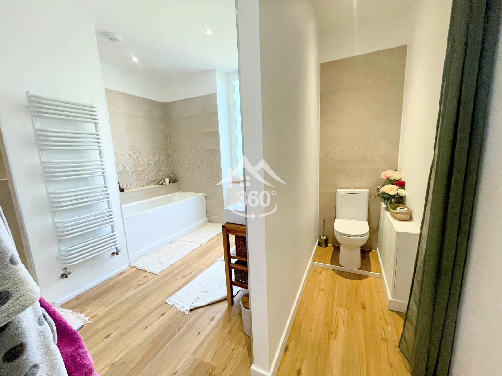 A l’étage, les verrières donnent au palier central ce charme désuet qui vous fera craquer. Ce palier donne accès à trois larges chambres baignées de lumière ouvrant chacune leur grande fenêtre tantôt à l’ouest, tantôt à l’est. L’ensemble ayant accès à une grande salle de bain avec WC tout aussi lumineuse.