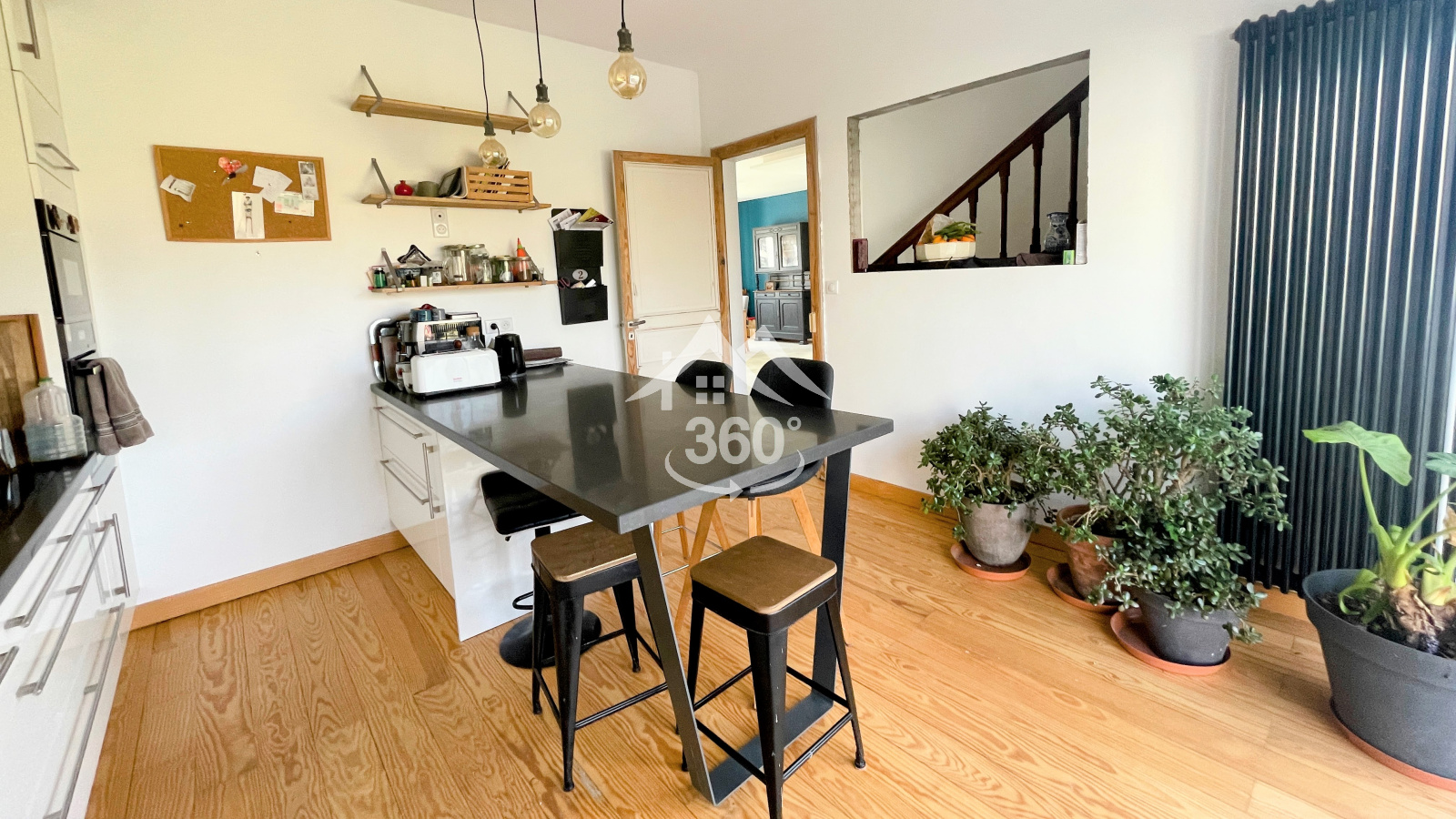 Très simplement, nous passons à la spacieuse cuisine équipée qui saura accueillir toute la famille et qui donne elle aussi sur la terrasse permettant avec facilité de prendre ses repas à l’intérieur comme à l’extérieur au gré des saisons.