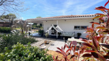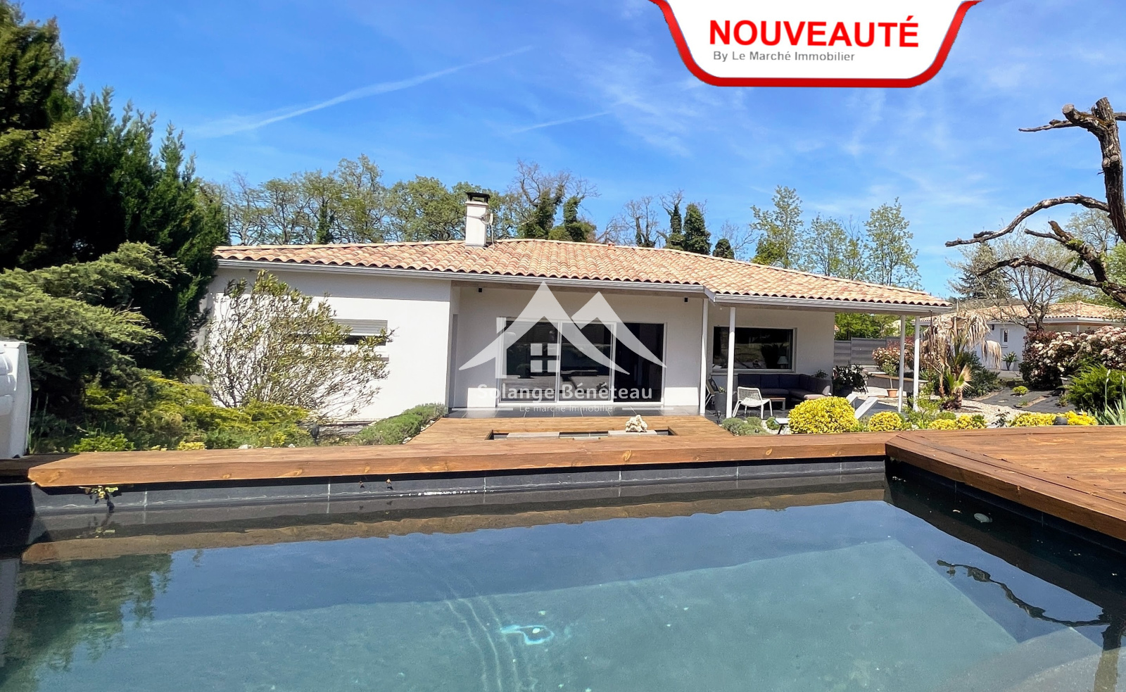 Puis, presque naturellement, le regard s’ouvre sur la piscine, posée là, au cœur de la propriété. Sa terrasse en bois prolonge ce sentiment d’évasion, entre lumière et douceur.