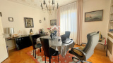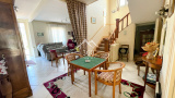 Nous serons irrémédiablement attirés par cette maison de maitre dont l'immense terrasse appelle au farniente avec sa profusion de table, de chaises longues ou de confortables fauteuils tantôt à l'ombre tantôt au soleil ou encore son barbecue. Déjà, l'envie d'en découvrir un peu plus de manifeste et sans résister, nous franchissons la porte qui nous amène à cette spacieuse cuisine équipée au milieu de laquelle trône une grande table où toute une famille trouvera place au quotidien. Dans un angle les 2 portes western ouvrent sur un très pratique cellier avec de nombreux rangements. Pour des repas plus formels, on accède depuis la cuisine à une jolie salle à manger avec sa véranda.
