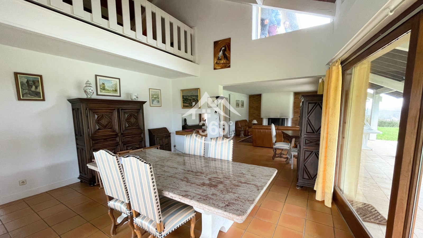 Empruntons cet escalier qui nous emmène sur la mezzanine qui surplombe l’espace de vie et dans laquelle il fait bon se poser.