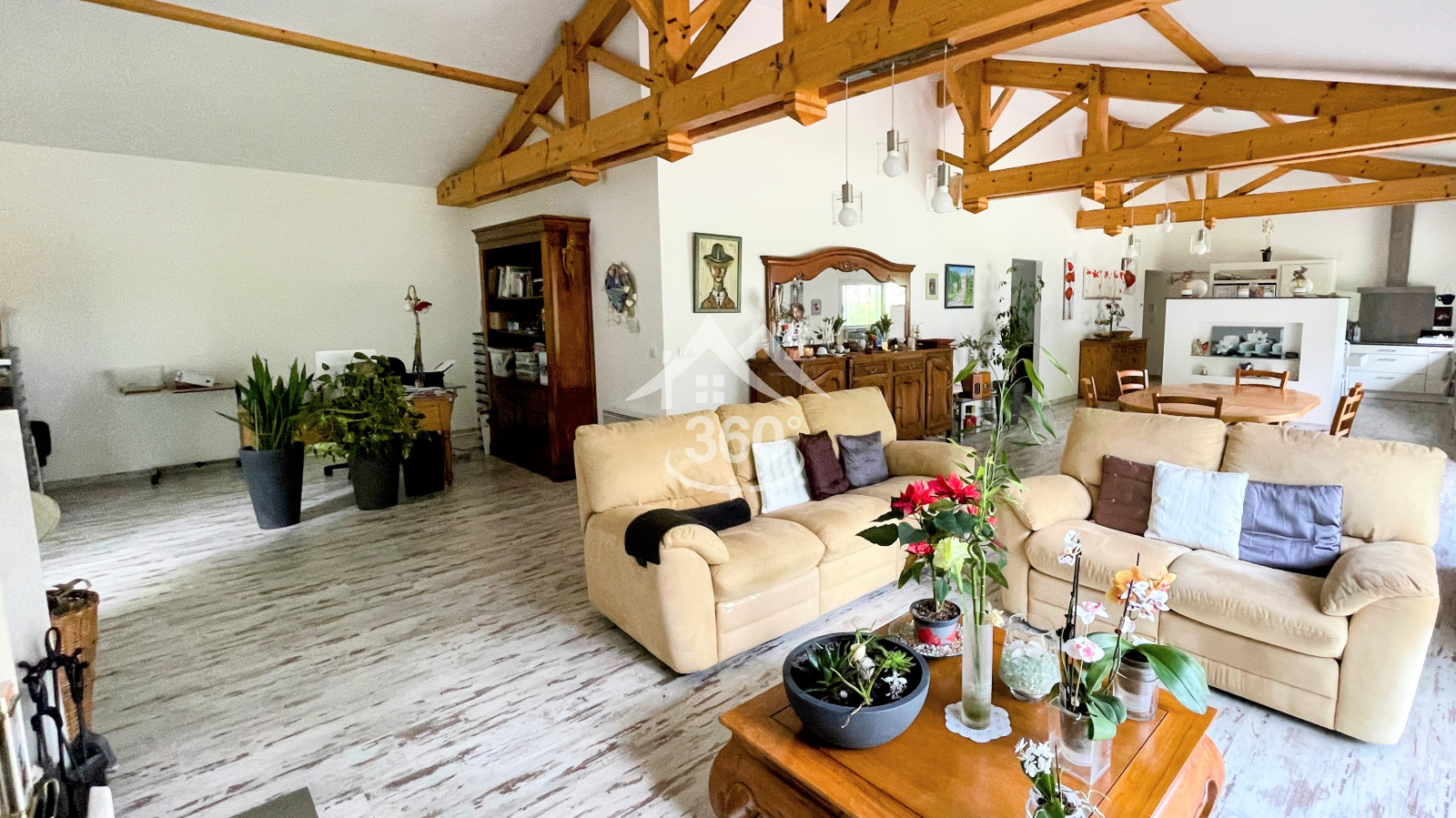Cette jolie maison de plain-pied de 153m2 qui convient aux personnes à mobilité réduite se vit autour de deux terrasses et d’une immense pièce à vivre de 90m2 qui pourra s’agencer selon vos désirs autour de sa cuisine équipée et de sa cheminée avec insert.