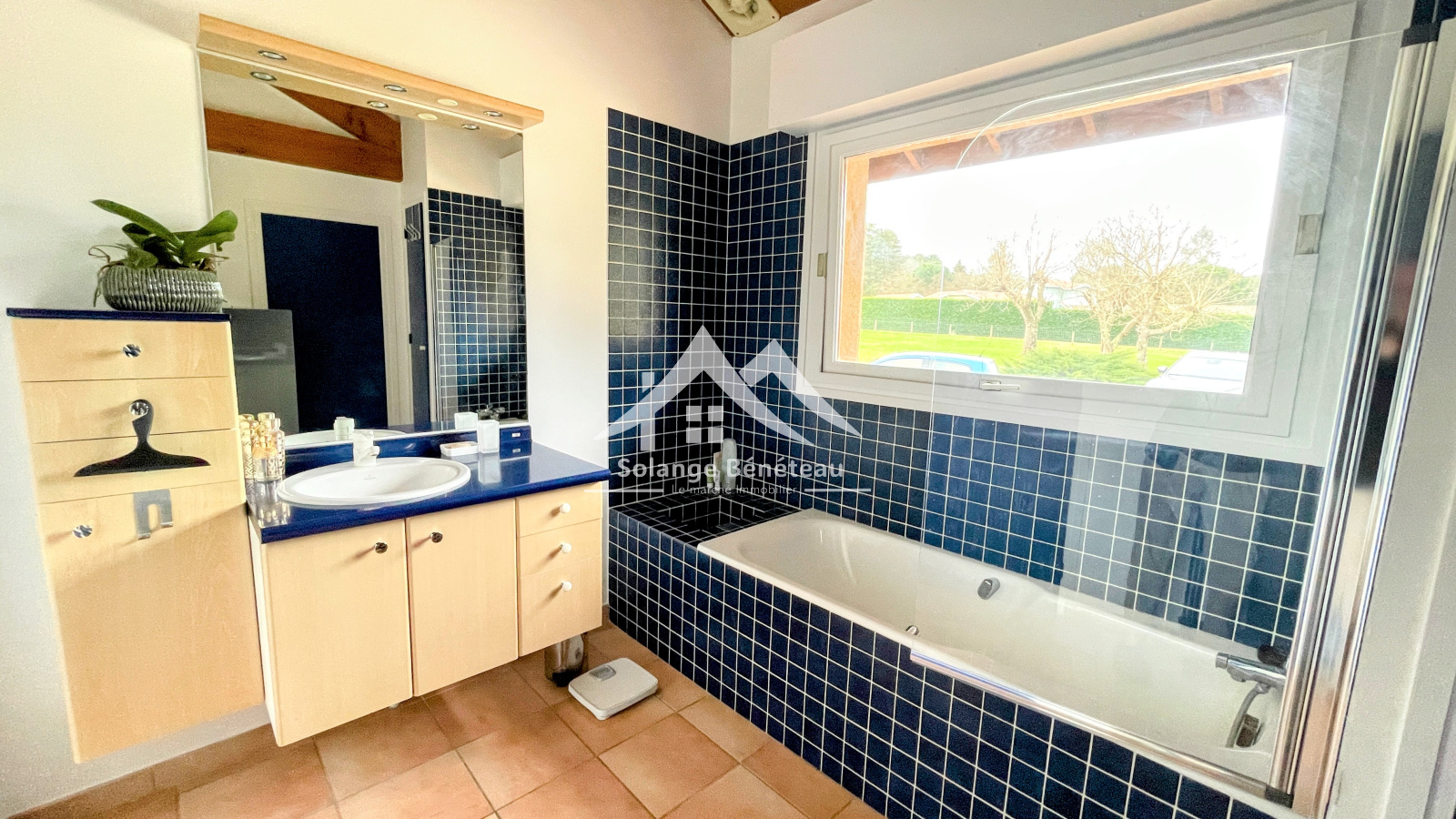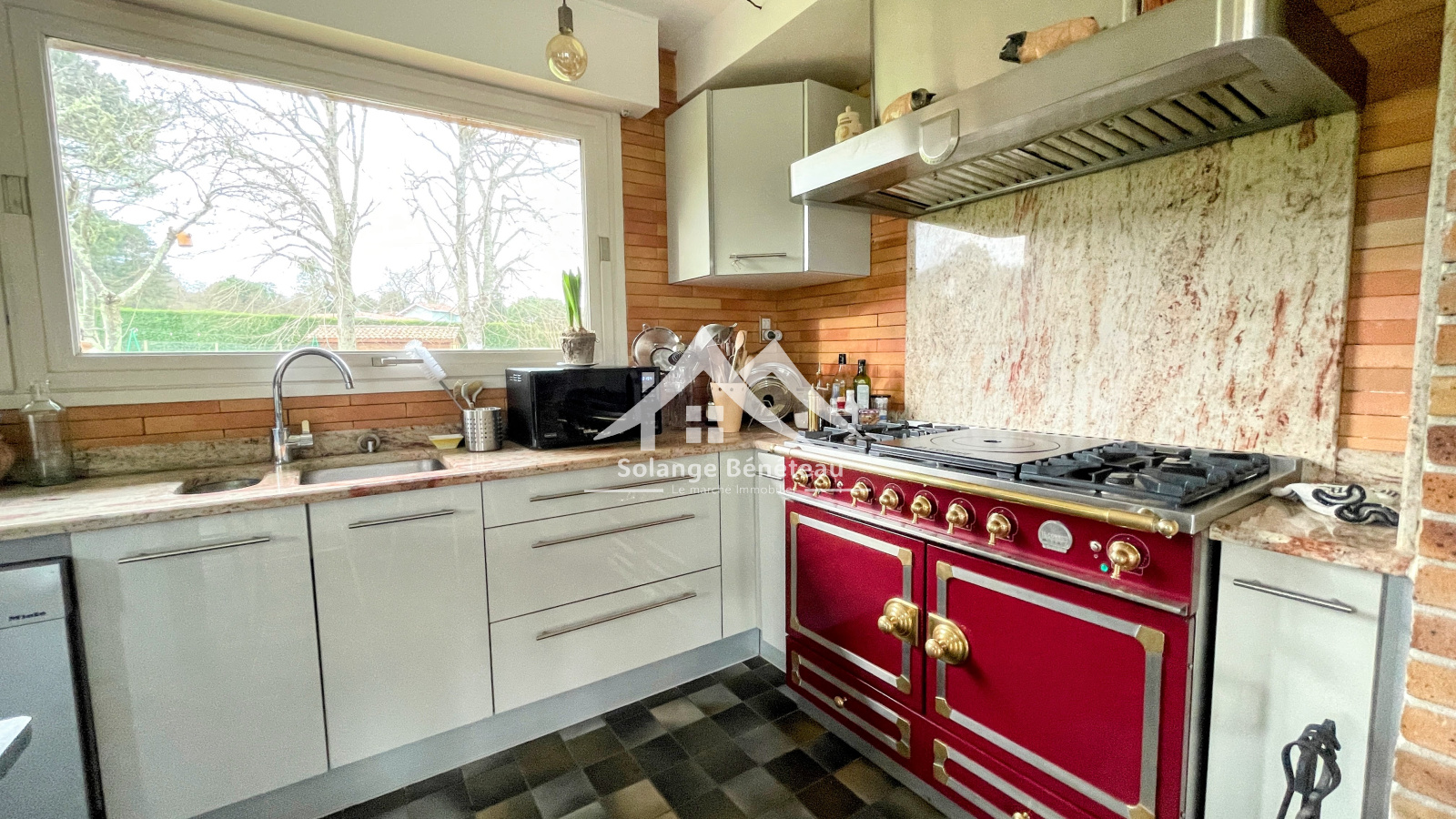 Une grande cuisine séparée avec son cellier, eux aussi très lumineux, viennent compléter ces espaces de vie, tout est là pour préparer de bons repas, y compris un barbecue intérieur et extérieur.