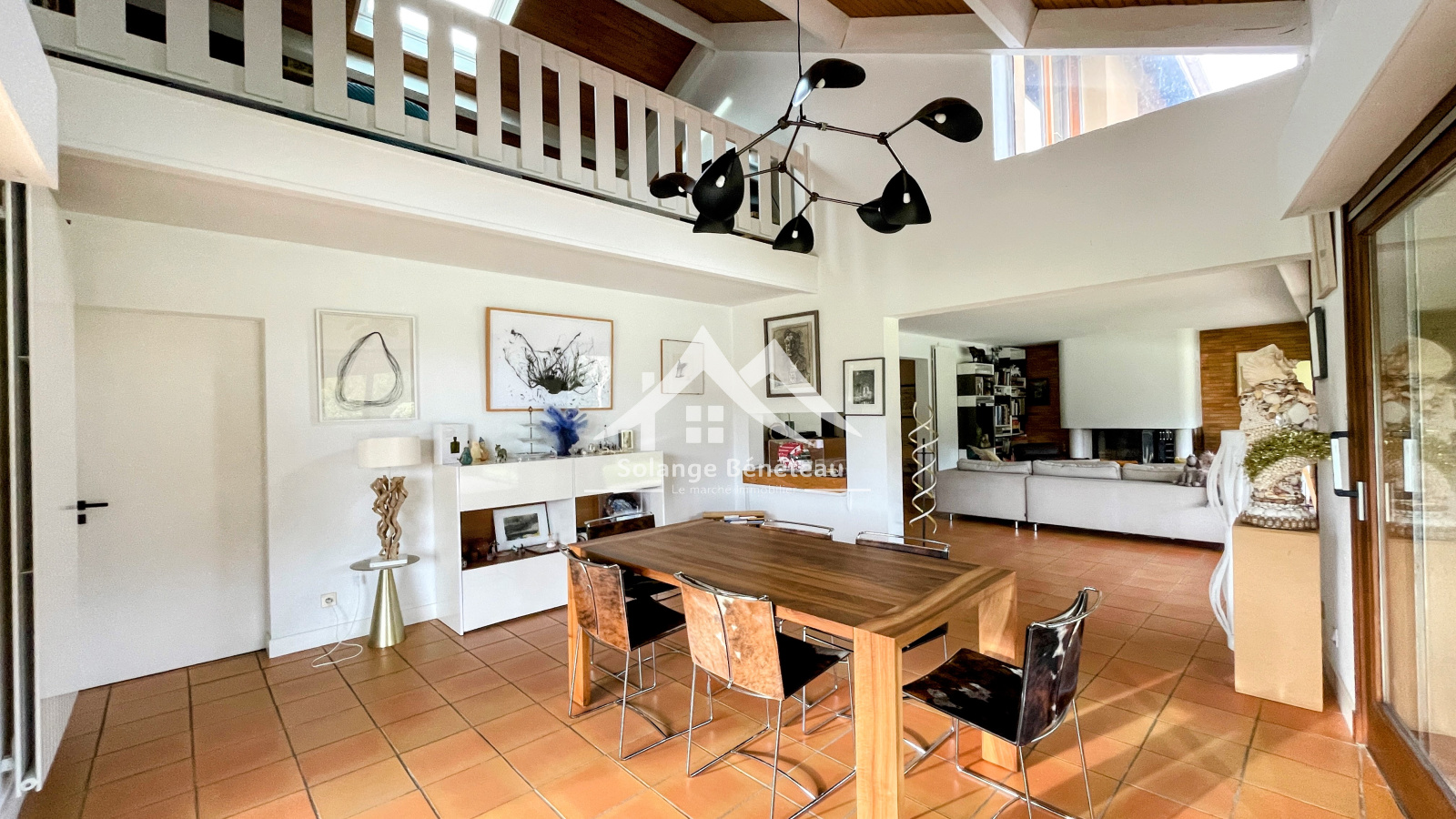 Empruntons cet escalier qui nous emmène sur la mezzanine qui surplombe l’espace de vie et dans laquelle il fait bon se poser.