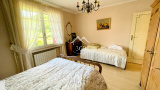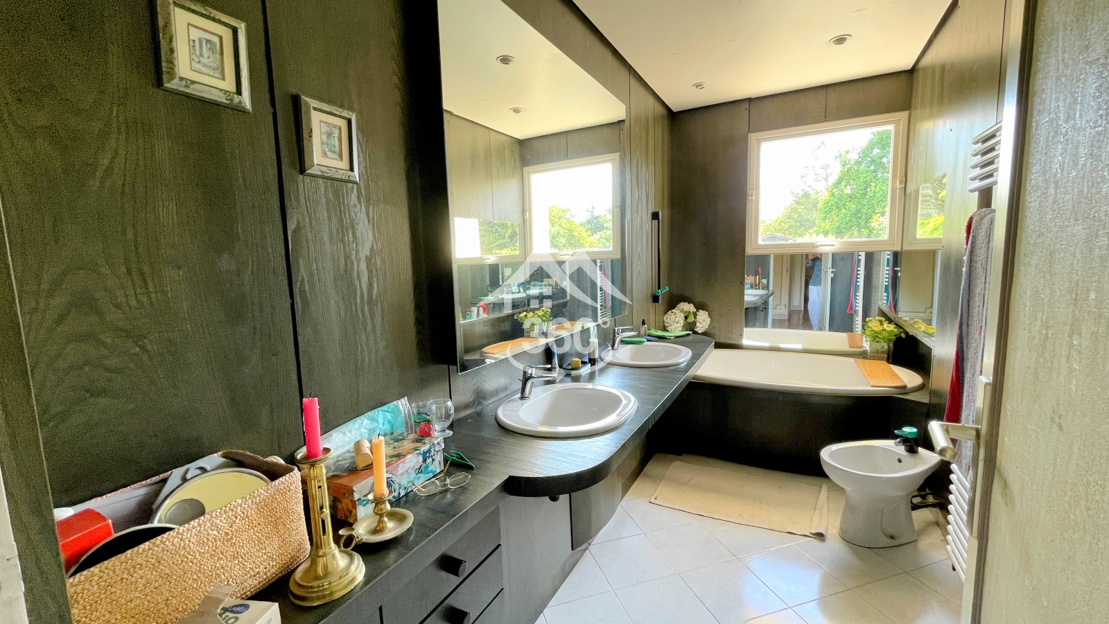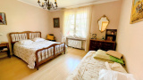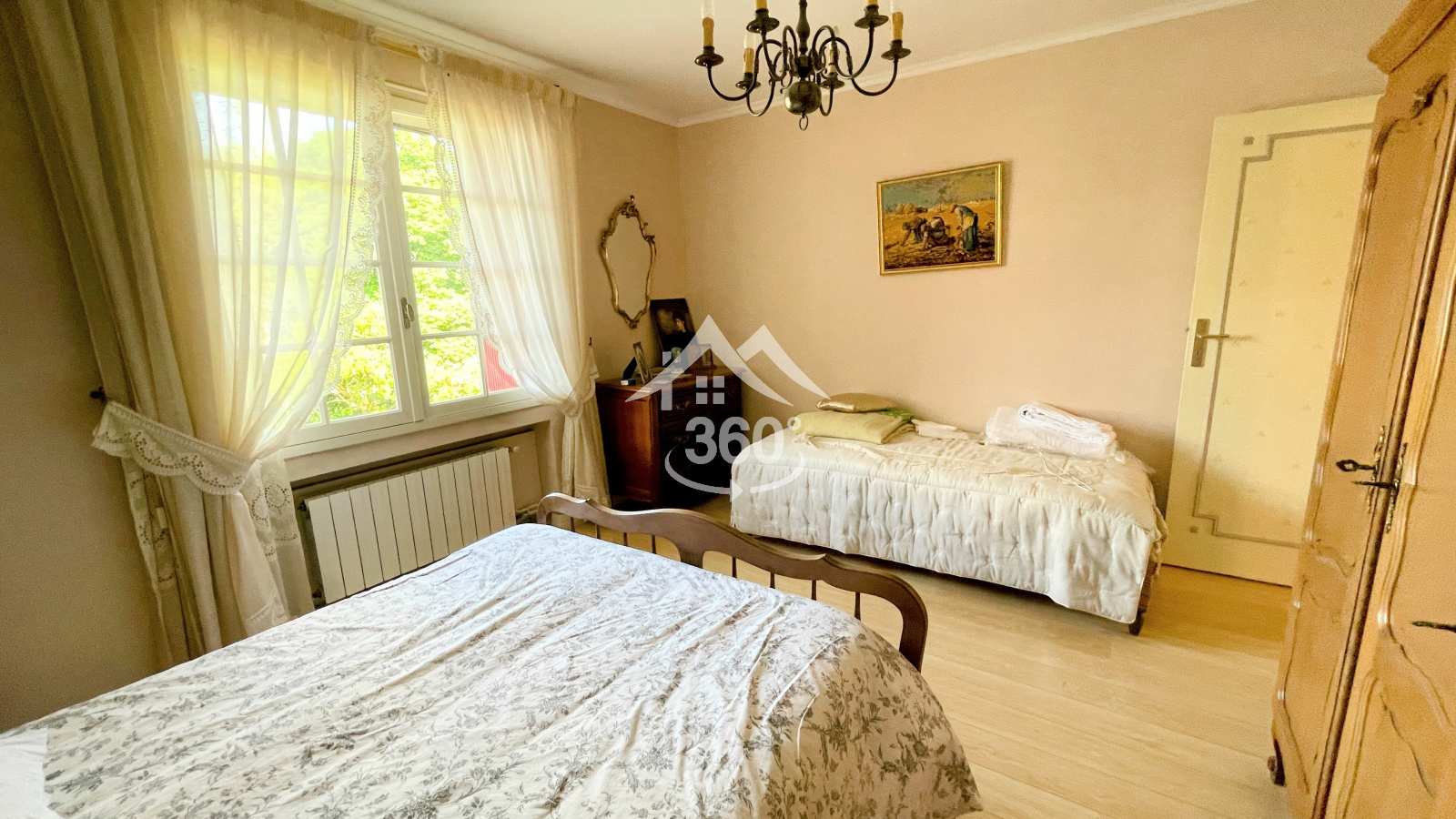 Ce qu’on me présente comme l’habitation principale est très plaisante, cette partie de 190m2 a été rénovée avec gout, on y trouve un vaste séjour de 40m2 avec sa salle à manger agencés autour d’une cheminée centrale, une lumineuse cuisine équipée, un bureau, un cellier et un WC séparé. Nous montons ensuite à l’étage pour y découvrir 4 grandes chambres, 1 très belle salle de bain et un WC séparé organisés autour d’un large couloir avec un plancher du meilleur effet.