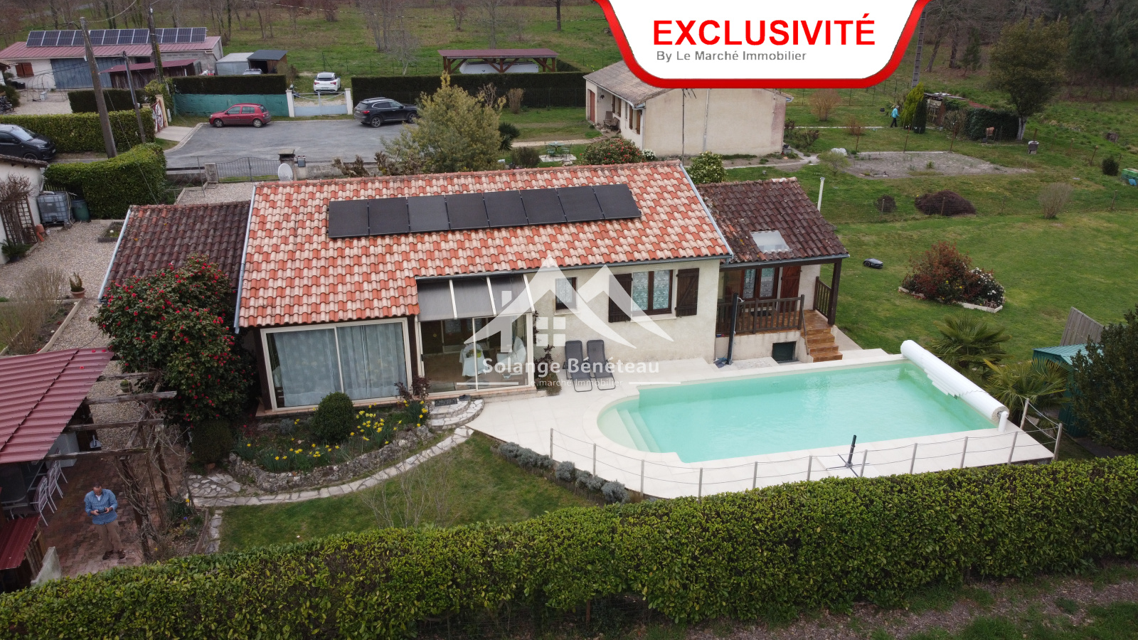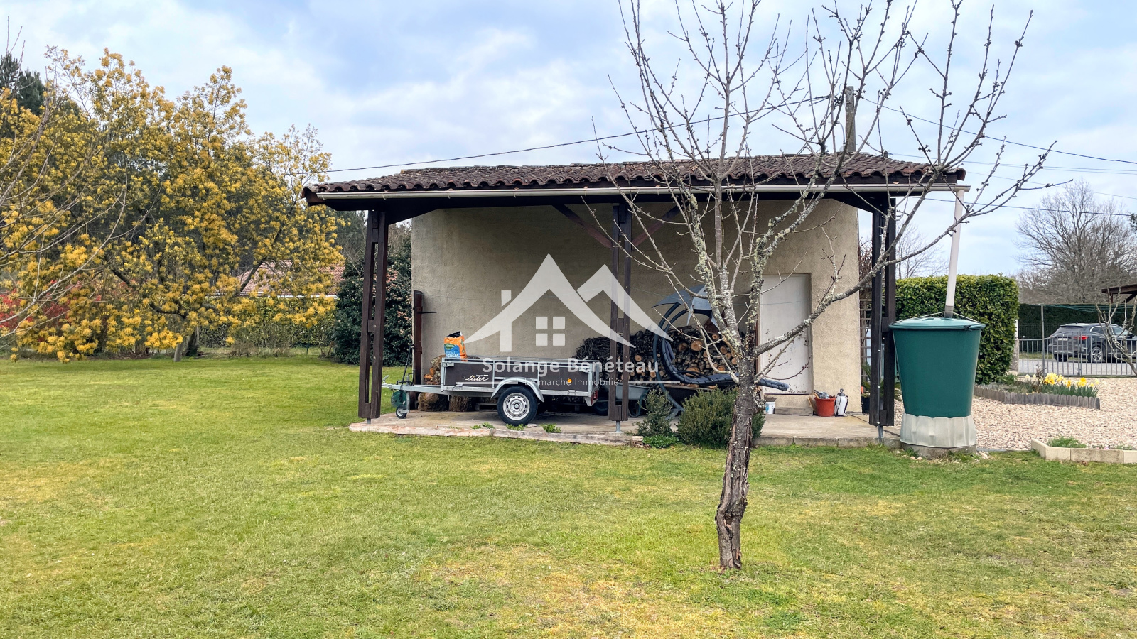 Côté dépendances, la maison est équipée de panneaux solaires et dispose d’un garage double, d'un abri de jardin ainsi que d’un carport.
