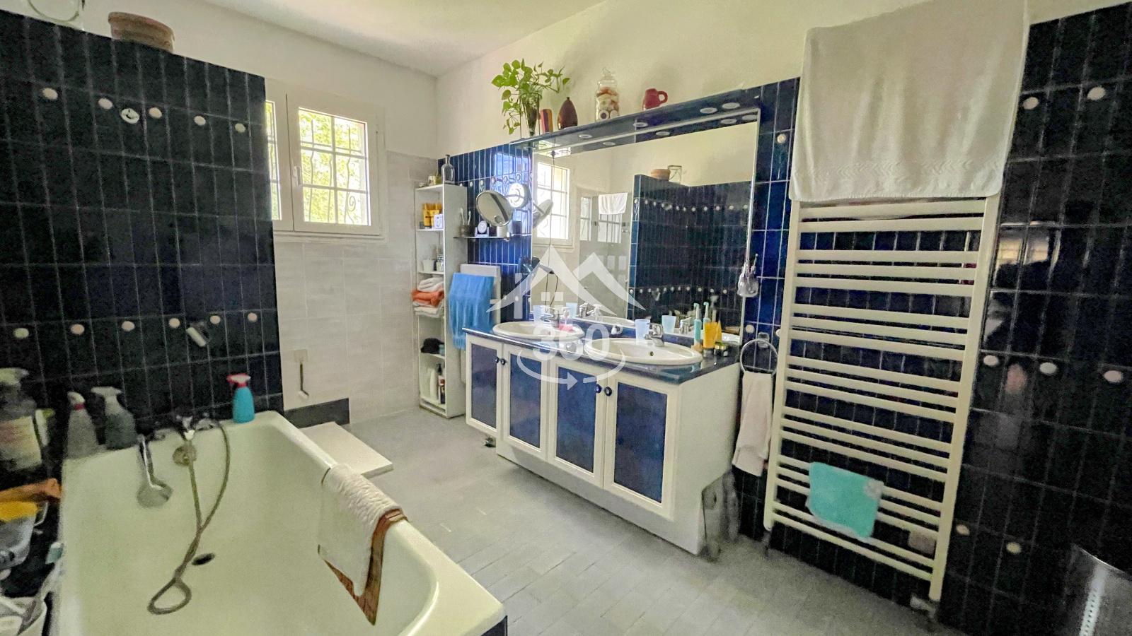 A la fois spacieuse et lumineuse, la salle de bains, comme un cocon chaleureux, offre le choix entre la douche et le bain.