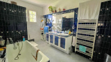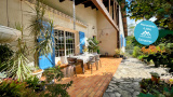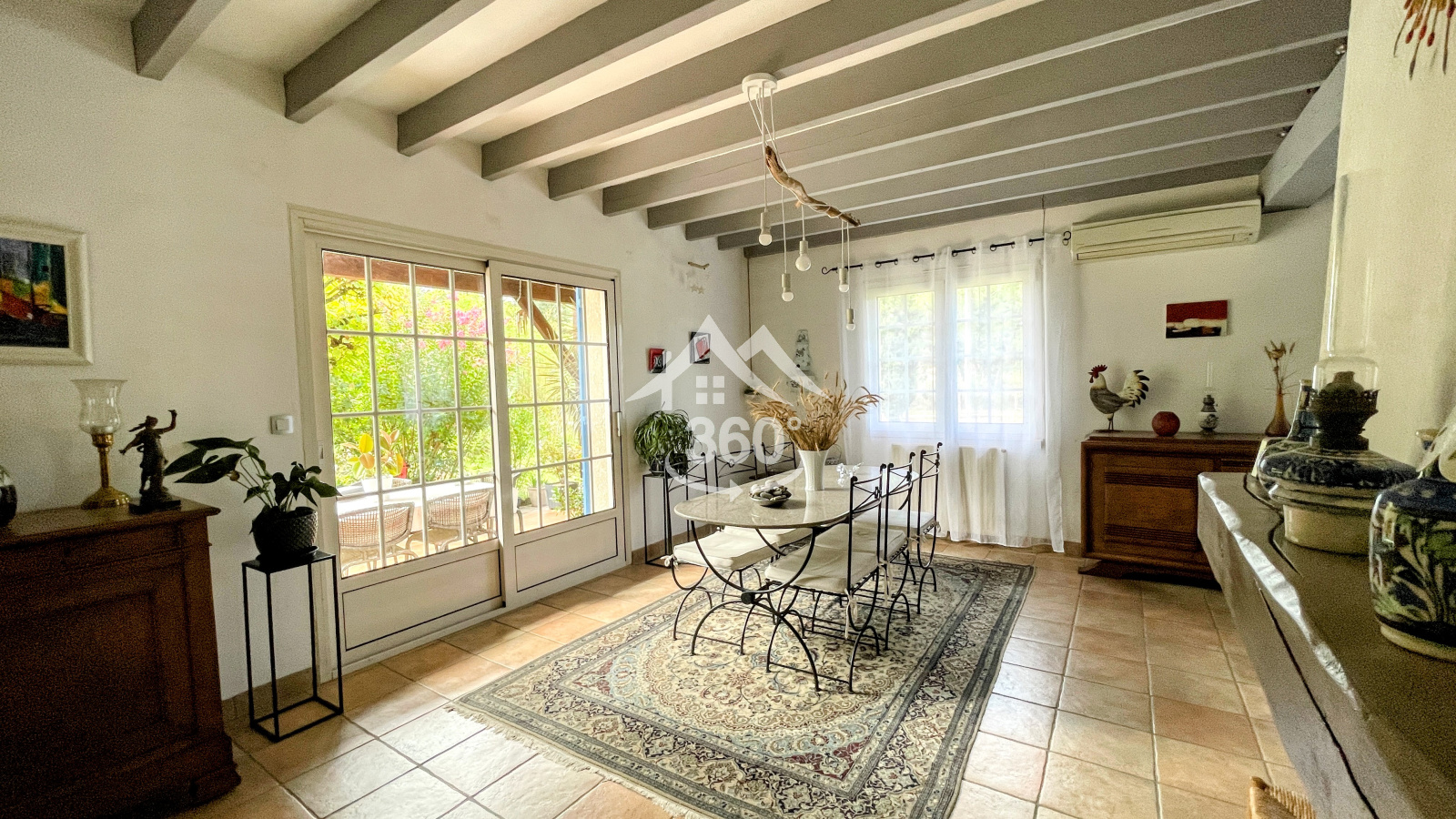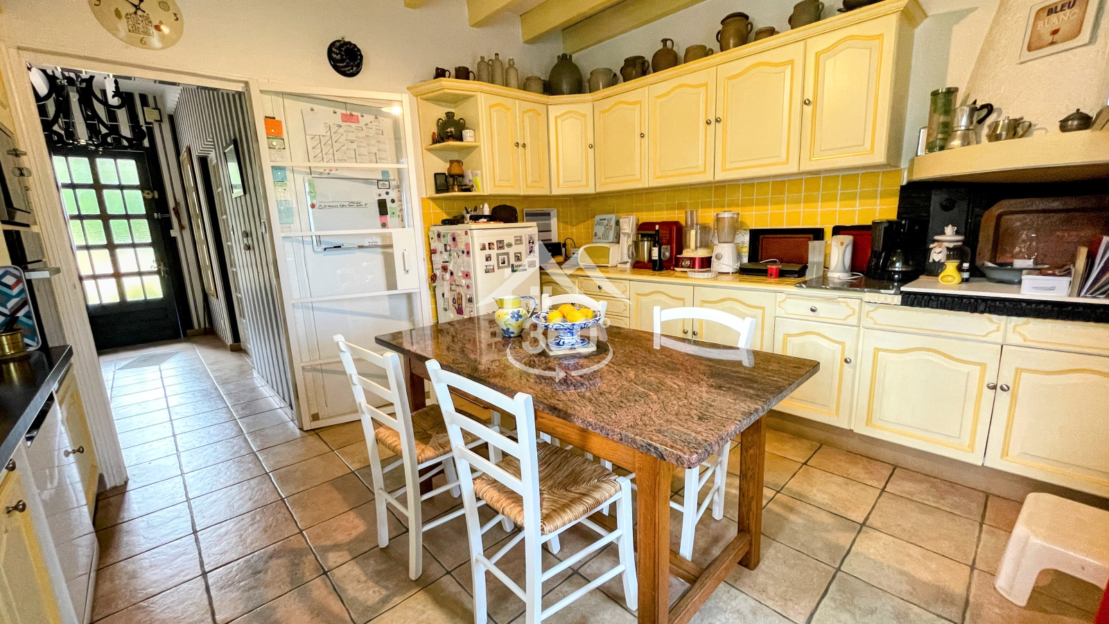Un peu en retrait, la cuisine séparée avec sa véranda est à la fois spacieuse et fonctionnelle. Elle donne envie de s’y poser, de refaire le monde en y préparant les repas.