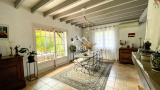 À seulement quelques minutes de Casteljaloux, le charme de cette demeure aux airs de ferme ancienne capte immédiatement le regard. Son portail nous accueille sur un terrain entièrement clos, plus de 6 000 m² de verdure où une végétation généreuse nous donne envie de la découvrir, de la ressentir : arbres adultes, bosquets denses, herbes claires dessinent des passages. L’air porte une odeur de feuilles et de terre, les couleurs s’imposent simplement. Rien ne force, tout existe.