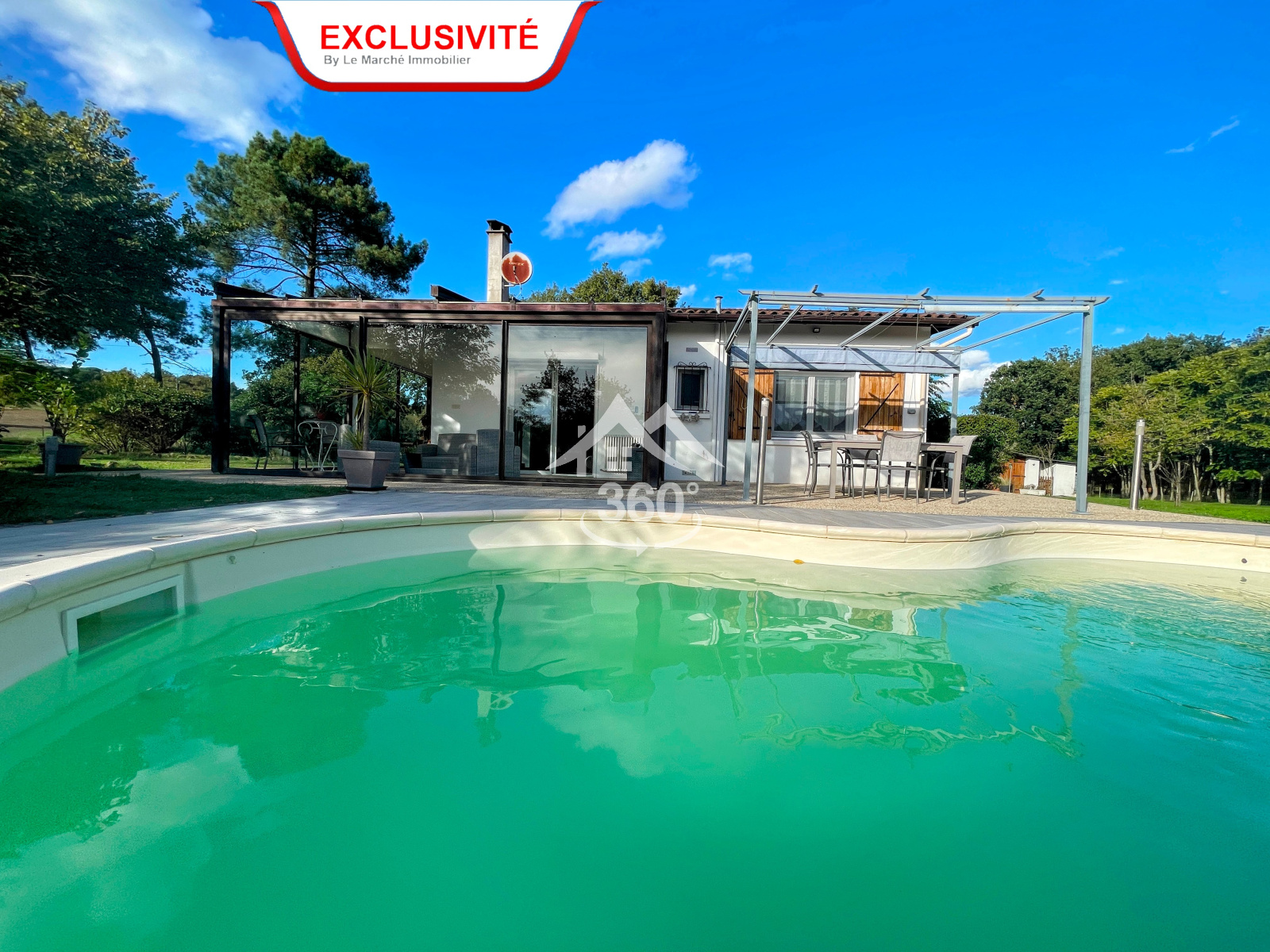 Il est temps maintenant d’aller se poser dans cette immense véranda qui fait le lien un intérieur cocoon, les magnifiques paysages sans aucun vis-à-vis et la piscine et sa terrasse.
